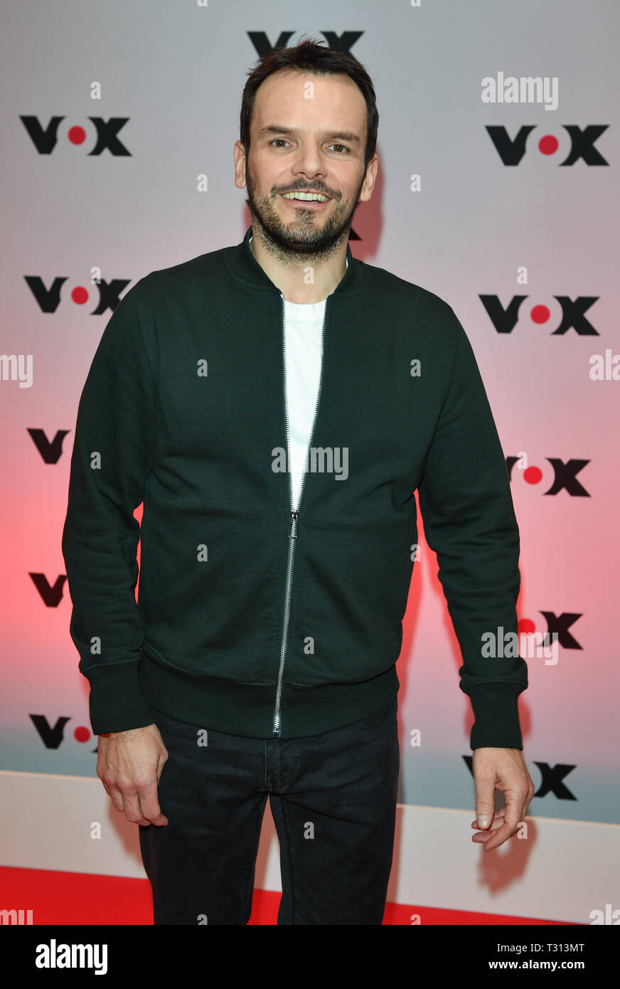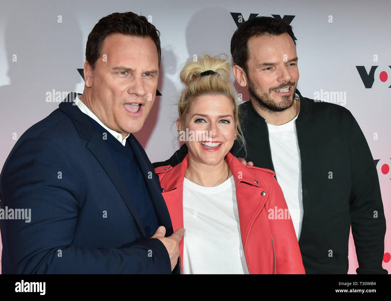 Berlin Germany 05th Apr 2019 Guido Maria Kretschmer L R Jeanette Biedermann And Steffen Henssler From The Vox Shows Guidos Masterclass Sing Meinen Song And Grill Den Henssler Take Part In A Press